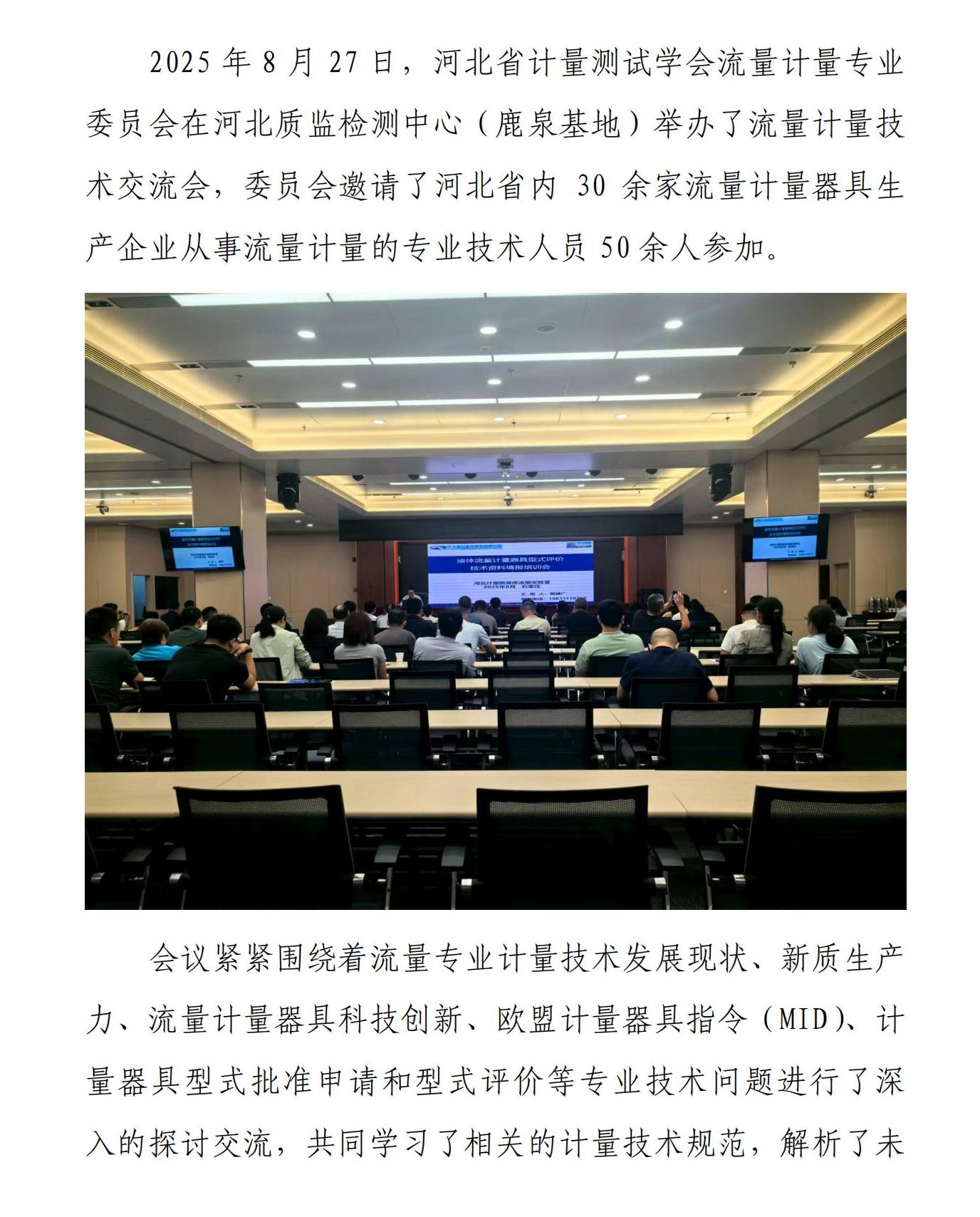河北省计量测试学会流量计量专业委员会流量计量技术交流会在石家庄召开