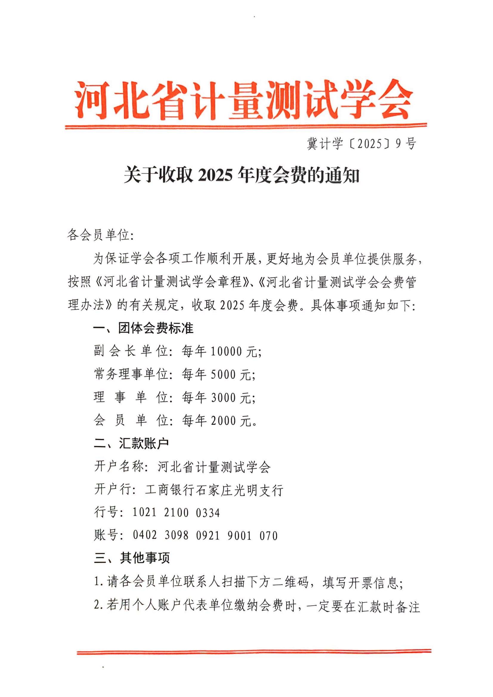 关于收取2025年度会费的通知