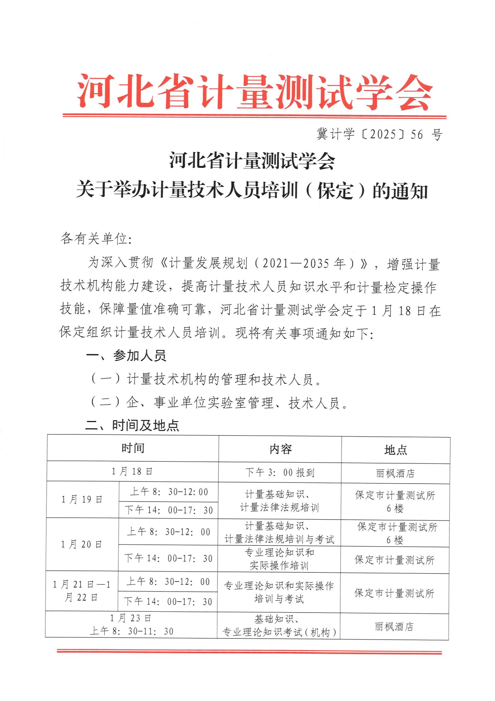 关于举办计量技术人员培训(保定)的通知