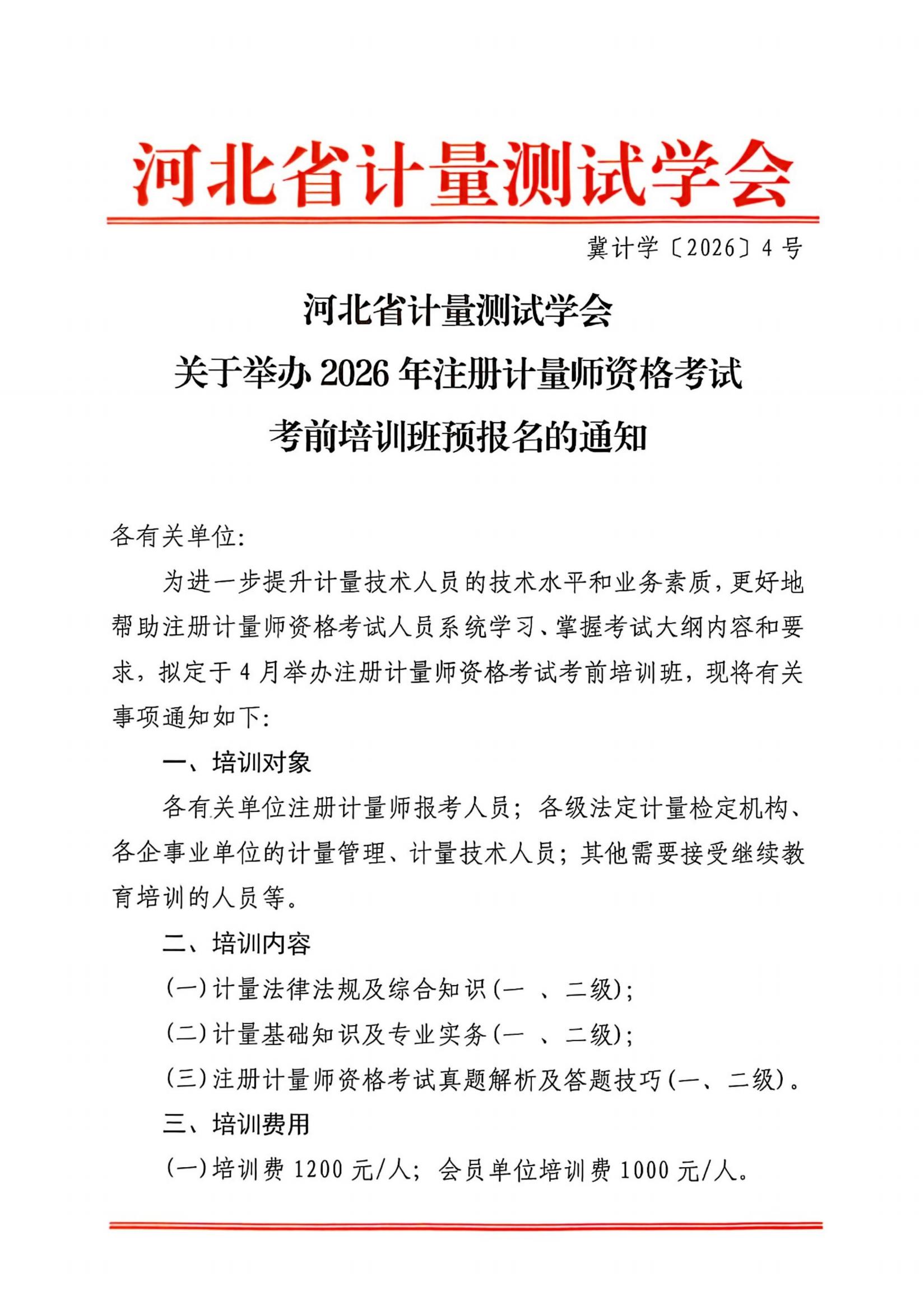 关于举办2026年注册计量师资格考试 考前培训班预报名的通知